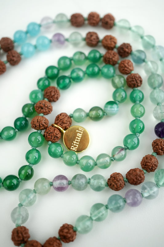 In 2014, I received a mala as gift from my yoga teacher that changed my life forever. It was a beautiful mala necklace made with healing gemstones, and my teacher explained that it could be used as a meditation tool to deepen my practice and connect with my inner self.