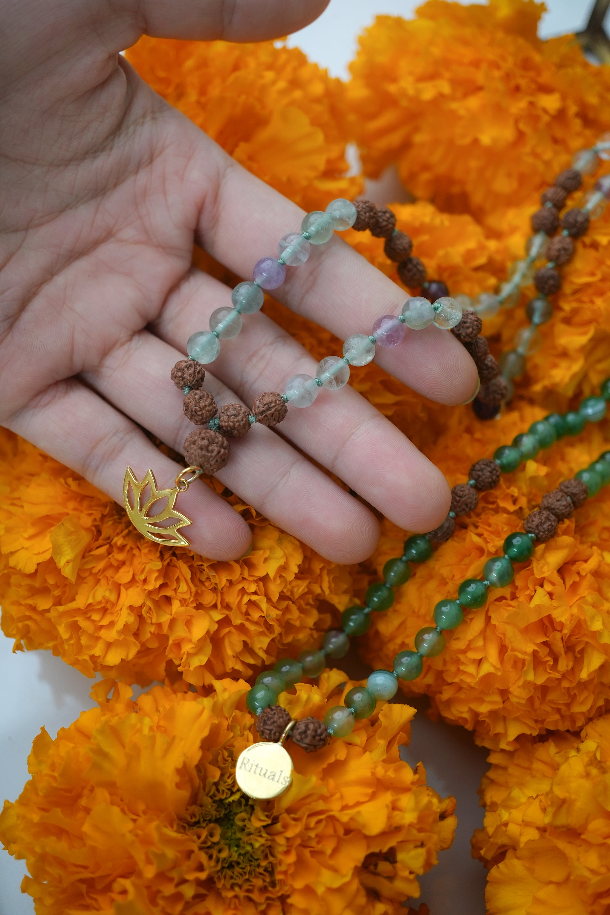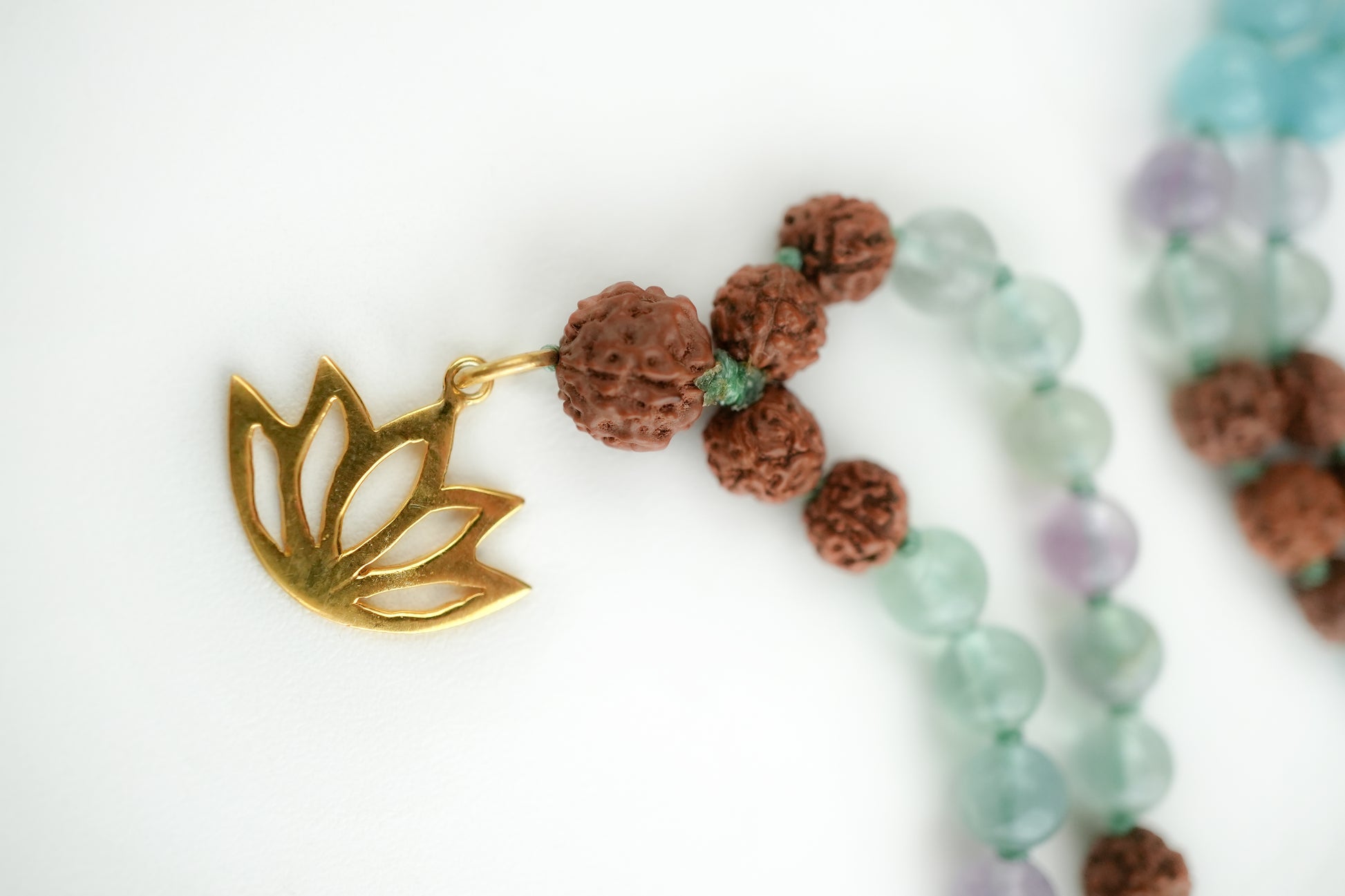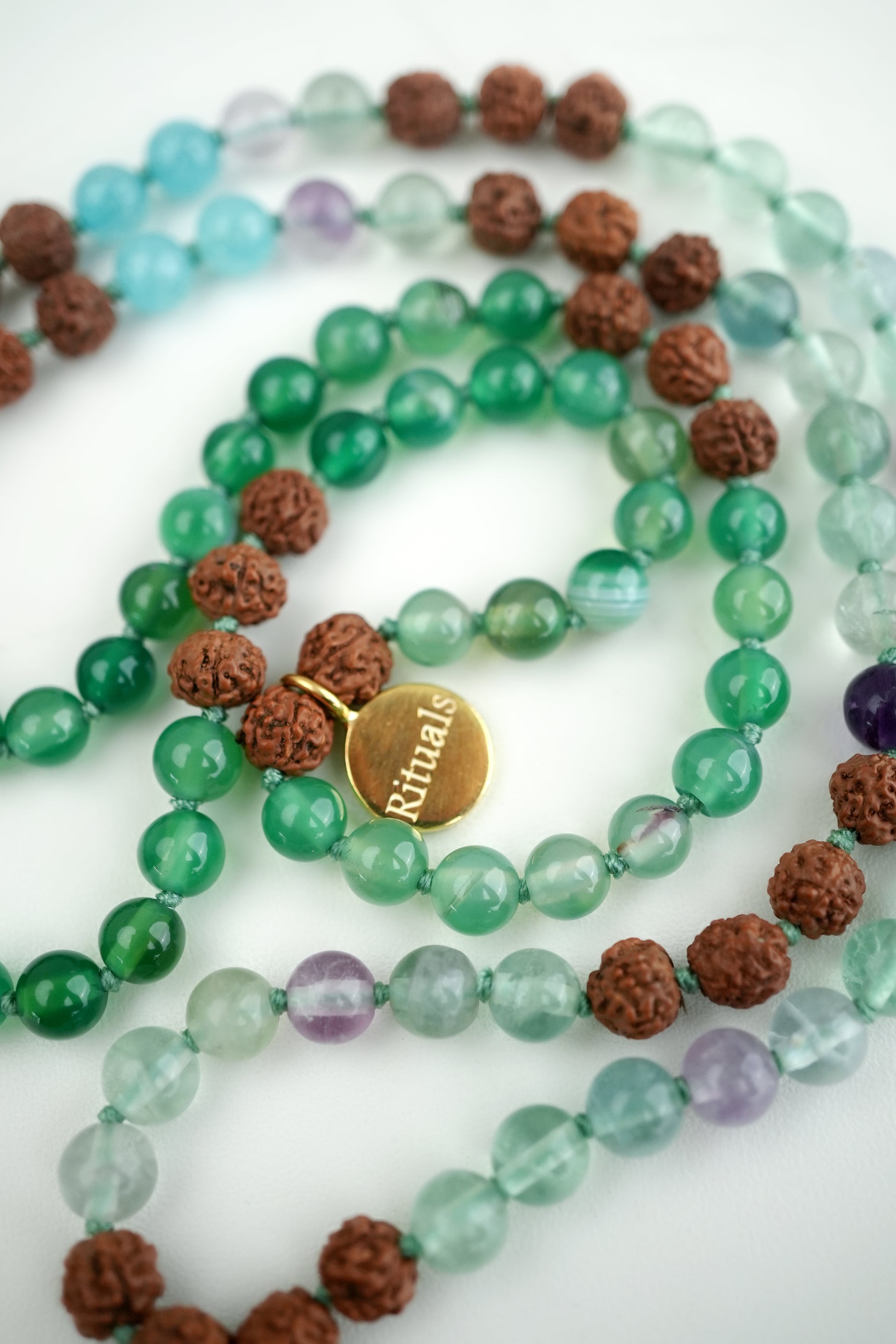 Immerse yourself in the rejuvenating power of the Healing Waterfall Mala. Featuring Aquamarine for soul cleansing, Fluorite for emotional clarity, and Chrysoprase for energizing revitalization. Inspired by Bali's cascading waterfalls, each bead captures the essence of renewal, washing away worries and bringing healing to the heart.